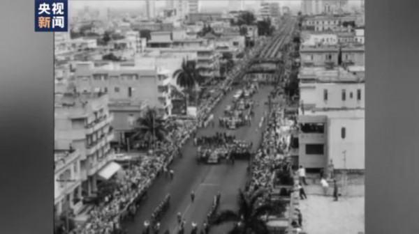总台记者 侯佳琦:这里是哈瓦那维达多区23街和12街的路口,在我的身后是古巴最大的墓地科隆墓地。1961年4月15日,美国轰炸机突袭古巴军事基地,次日,托雷罗和数万哈瓦那人聚集在两条大街上,为那次空袭中英勇牺牲的7名受害者举行隆重葬礼。葬礼上,菲德尔·卡斯特罗就是在这个街口处正式宣布古巴革命的社会主义性质。葬礼后,托雷多和所在民兵学校的同学们毫不犹豫地奔赴战场,准备迎战。