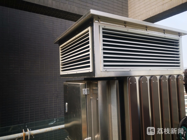 在西堤国际小区,记者跟着建邺生态环境局的工作人员爬上了居民楼顶,正值中午十一点半,是居民们在家中做饭的时间,然而在楼顶平台上,记者却闻不到一点油烟味。与其他居民楼顶不同的是,这里多了好几个铁皮箱子,箱子外面还有监测设备。工作人员表示,这些就是加装在排烟口的油烟净化器。只要楼下有一家在炒菜,这套二次净化设备就自动启动,开始工作。“有静电吸附功能,通过静电把油烟吸附到上面,上面还有活性炭除味的处理。我们也会24小时对设备进行排放监控,一旦超过了国家标准2.0毫克每立方米的标准会在系统后台报警提醒。”技术人员杨晨说。