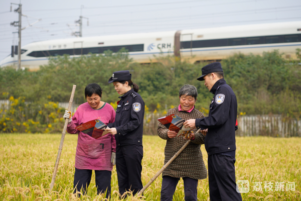当前,正值秋收秋种农忙之际,南京铁路公安处南京南站派出所大力践行新时代“枫桥经验”,今天(10月22日)组织干警前往溧水区白马镇吕家山村,走进农户和田间地头开展法制宣传活动,进一步提升铁路沿线广大群众的法律意识。