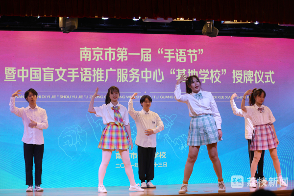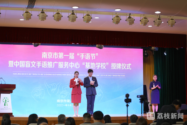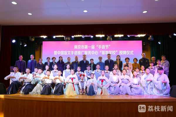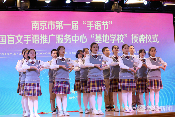 南京市第一届“手语节”暨中国盲文手语推广服务中心“基地学校”授牌仪式今天在南京市聋人学校举行。