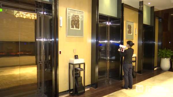 星级饭店和文娱场所的疫情防控也十分严格。根据疫情防控的要求,酒店在前台等宾客聚集区域设置"一米线",房卡在发放前和回收后,都会进行两次消毒。酒店工作人员定期拿着消毒喷枪,对公共区域和密闭空间进行消毒。