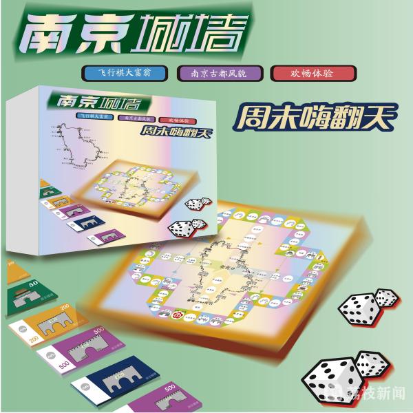 肖媛媛的《南京明城墙棋盘游戏》,将南京城墙文化幻化成棋盘游戏,起点用“南京”的谐音“蓝鲸”绘制,棋格则是南京的16处古城门和附近著名景点,“通过寓教于乐的方式,让孩子们在棋盘游戏当中,感受到南京的历史和南京的城墙文化。”