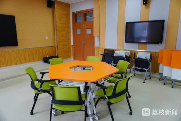 可移动的拼接式课桌和座椅,上课时可灵活调整,三角形、圆形、长方形、六边形……