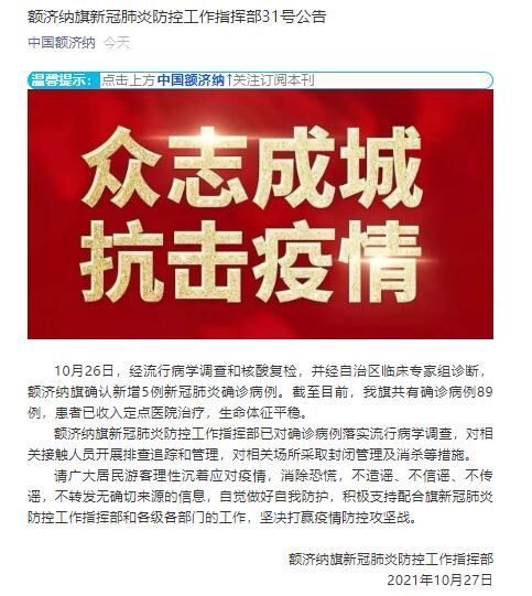 荔枝新闻讯 据“中国额济纳”微信号消息,额济纳旗新冠肺炎防控工作指挥部发布紧急公告 ,经额济纳旗新冠肺炎防控工作指挥部研究,自2021年10月27日起,除承担疫情防控指挥部任务和服务保障以外人员,所有的党政机关、人民团体、企事业单位和社会组织实行居家办公模式,广大干部职工和居民非允许坚决不外出,减少流动性,有效阻断疫情传播链条和渠道,努力为打赢疫情遭遇战阻击战总体战贡献力量。