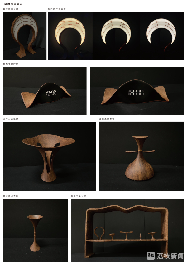 《登科系列》中国科举博物馆衍生品,是南农大的文创作品。月下苦读台灯、连中三元笔筒、鱼龙变化时钟、青云直上香插以及北斗七星收纳架,传统文化与现代设计完美融合,不仅典雅美观,还极具功能性。南京农业大学工业设计专业学生段宇洁介绍,“在产品的设计过程中,我们选用了像明远楼,还有科举时期的青瓷纹样、石雕纹样,以及科举俗语作为设计元素,我们来提取这些元素的文脉特征,运用到这些产品当中去。”