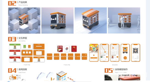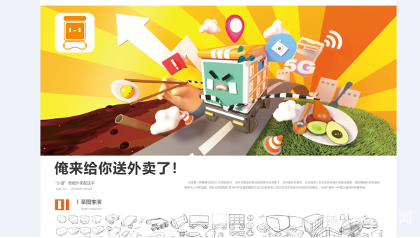 设计源于生活。这款让外卖员与消费者零接触的智能外卖配送车,节省了外卖员的配送等待时间,避免了外卖被错拿、盗窃的风险,多功能的隔间,还保证了食物的新鲜。“我们可以设置一些具有保温的热格,它既然有保温的功效,也有保冷的功效,当然还要后续配合一些体系化的设计。”南京农业大学工业设计专业学生王炳洪说。