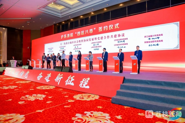 在大会现场,上海市黄浦区、徐汇区、静安区、青浦区和江苏省南京市、无锡市、常州市、苏州市,浙江省杭州市、嘉兴市、湖州市,安徽省合肥市“四区八市”共同签署《长三角部分地区社会组织协同发展暨党建共建战略合作协议》,将开启长三角区域社会组织“党建互促、资质互认、服务互助”和“平台共建、人才共育、监管共抓”新局面。