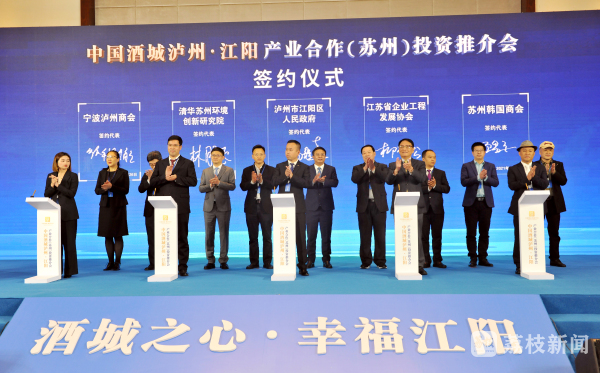 推介会上,江阳区人民政府分别与清华苏州环境创新研究院、江苏省企业发展工程协会、宁波泸州商会签订战略合作协议,战略合作协议的签订将为江阳“建成千亿强区、奋进全国百强”注入强劲动力。
