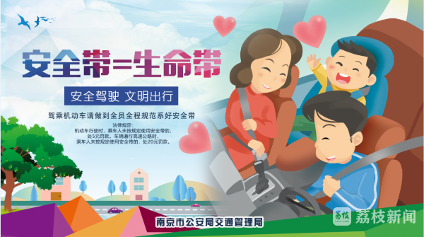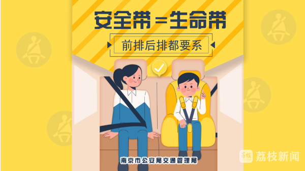 为深入落实公安部“一盔一带”安全守护行动,根据全省统一部署,从11月1日开始,南京交管部门在前期针对大客车、7座以上载客汽车、出租车、网约车乘车人未按规定使用安全带进行处罚的基础上,对其他私家车辆乘坐人员,特别是后排乘车人员未按规定使用安全带的开始处罚。