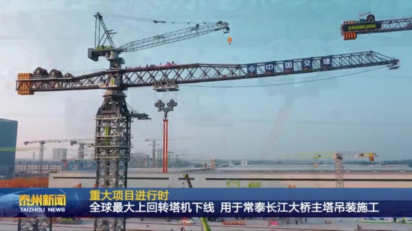 10月25日,由中交二航局和中联重科共同开发研制的全球最大上回转塔机W12000-450在湖南常德下线,将用于常泰长江大桥5号墩主塔吊装施工。