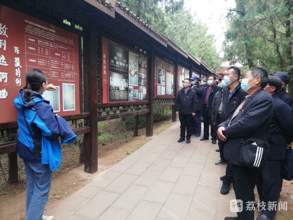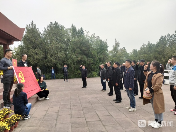 在马陵山红色教育基地,吴庄村党员干部驻足巍峨耸立、庄严雄伟的宿北大战纪念碑前,通过观看文字介绍、珍贵详实的历史照片和栩栩如生的人物雕塑,全面了解宿北大战历史风云,接受心灵的震撼与洗礼。