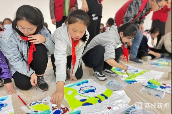 活动现场,镇江博物馆志愿讲解员带领同学们寻访了《奔流——镇江近代历史陈列》,了解镇江城市发展的光辉历程,通晓镇江江河交汇的优越地理位置。参观完“北固英烈”群雕后,社教员组织同学们DIY小红军帽,用孩子们能理解的方式感受红军精神,缅怀可亲可敬的革命烈士,并在展厅的互动点歌台齐声高唱《没有共产党就没有新中国》《我和我的祖国》等红色歌曲。展厅寻访结束后,社教员在青少年活动中心开展了大运河微课堂,同学们结合京口闸遗址出土文物,以京杭运河沿线手绘地图为素材,绘制了独特的“运河风光”文化衫,进一步增强了对大运河文化带的认知。