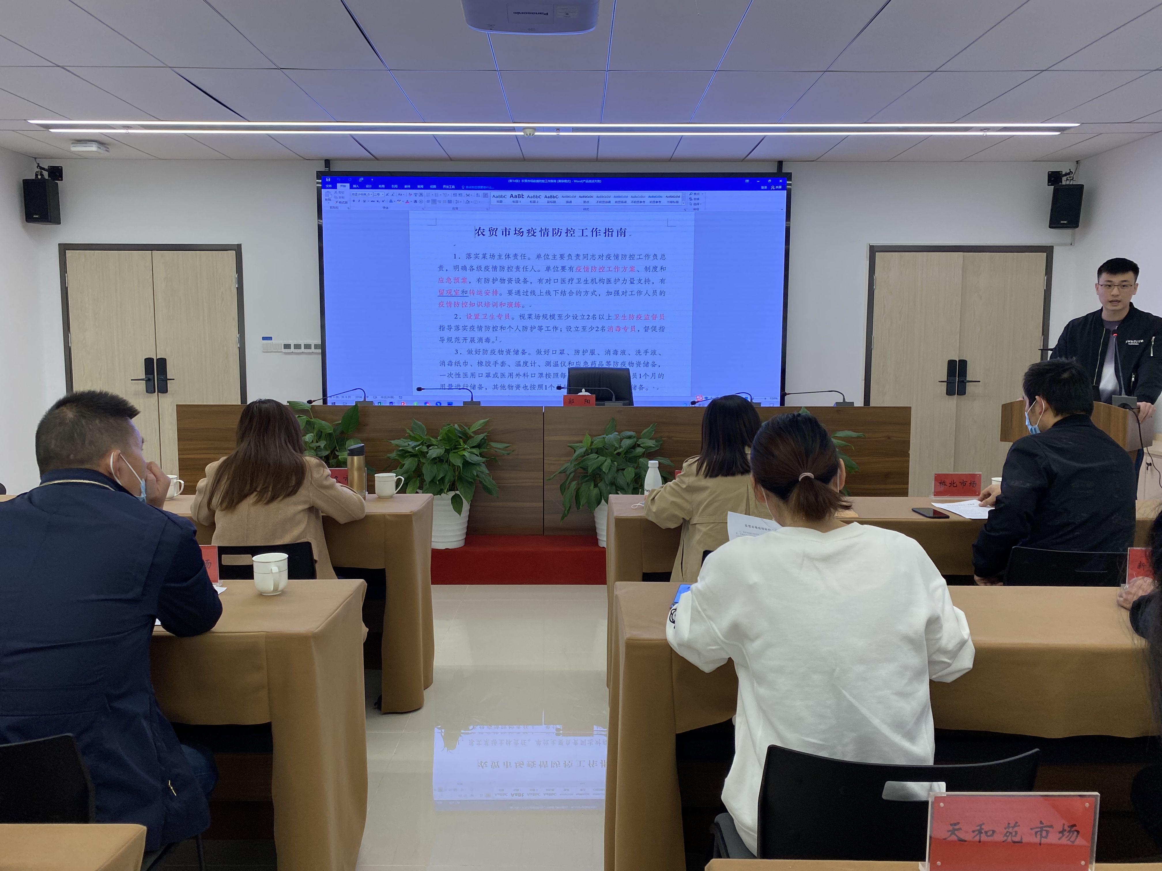 与此同时,为各农贸市场送疫情防控“锦囊”,就9月版的《江苏省重点场所重点单位重点人群新冠肺炎疫情常态化防控指南》进行培训解读。要求各市场将防疫指南上墙入脑,对照新14条查漏补缺,修改完善工作方案、应急预案和应急演练记录,配齐卫生防疫监督员和消毒专员,规范记录员工健康监测、消毒通风、核酸检测、疫苗接种等台账。会议还给每个市场发放了待张贴到每个导台的一米线和无接触支付的“温馨提醒”。