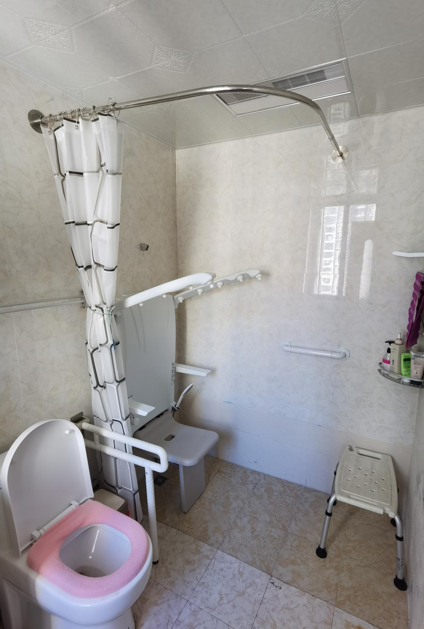 记者在许阿姨家里看到,一室一厅的安置房内部面积不大,卫生间的洗澡设施由先前的浴缸换成了定制款坐式淋浴器,这是一种镶嵌在墙体的一体化淋浴设施,有宽大的可拉合坐具,两侧有可转动的喷淋,热水器就藏在墙体护板中,原来紧靠着浴缸的坐便器安装了U型上翻扶手,随拉随扶,不管是老人如厕还是洗澡时作为抓手,扎实又轻便,墙体的另一边加装了一字扶手。“我用了一次就会了,简单得很,浴缸洗澡因为经常手无力,爬进爬出以前摔过,现在可以坐着洗澡的淋浴特别舒适。”