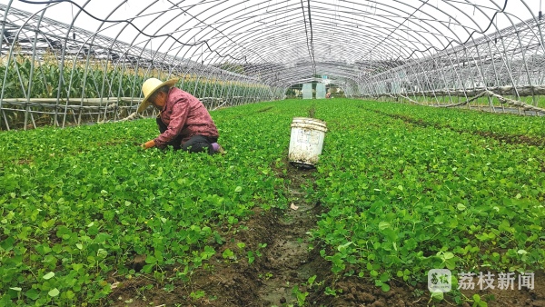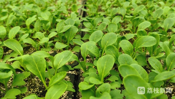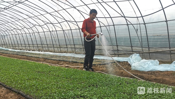 今天上午,记者来到梅李镇向明蔬果专业合作社,看到大棚里半个月前种下的金花菜长势良好,马上就可以采收了,而一旁种植的莴苣、萝卜等蔬菜也即将进入成熟期。在育苗棚里,管理人员打开了喷淋装置,为菜薹、生菜等下一批等待种植的菜苗浇水,一切都有条不紊地进行着。