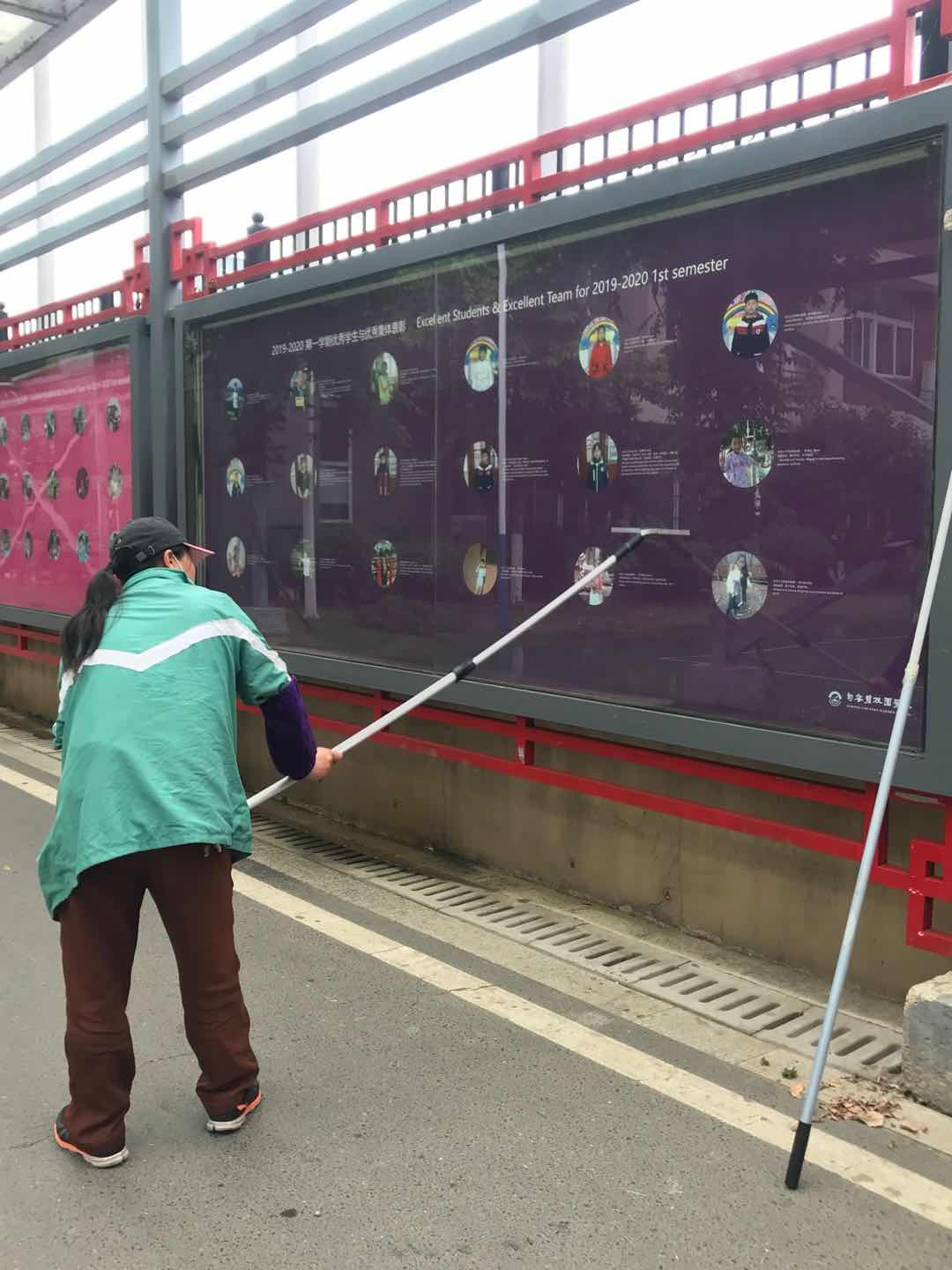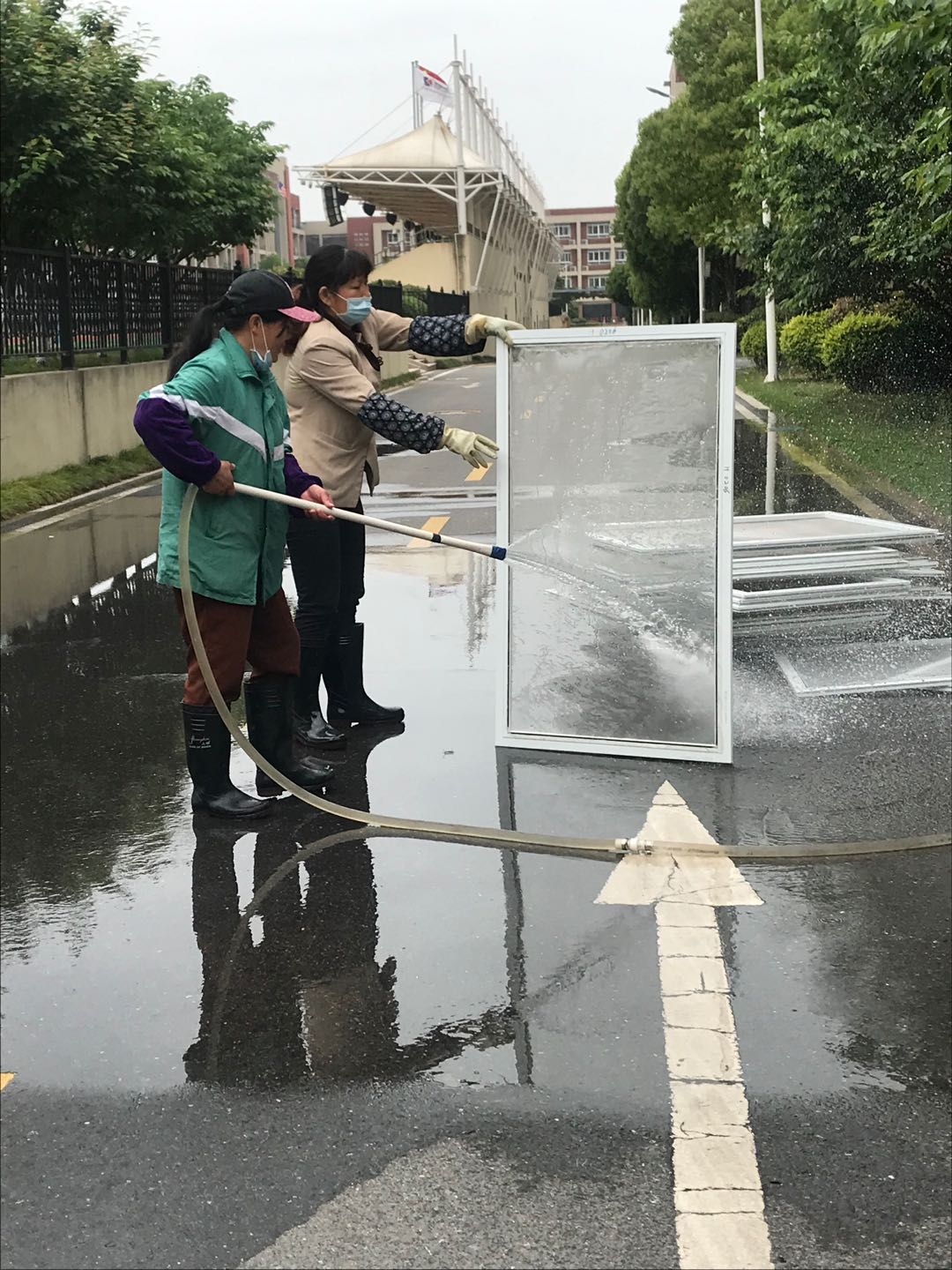 疫情期间除了做好晚上安排的消毒工作外,还主动承担了每周五学生放学后、家长开放日等结束后的消毒工作。