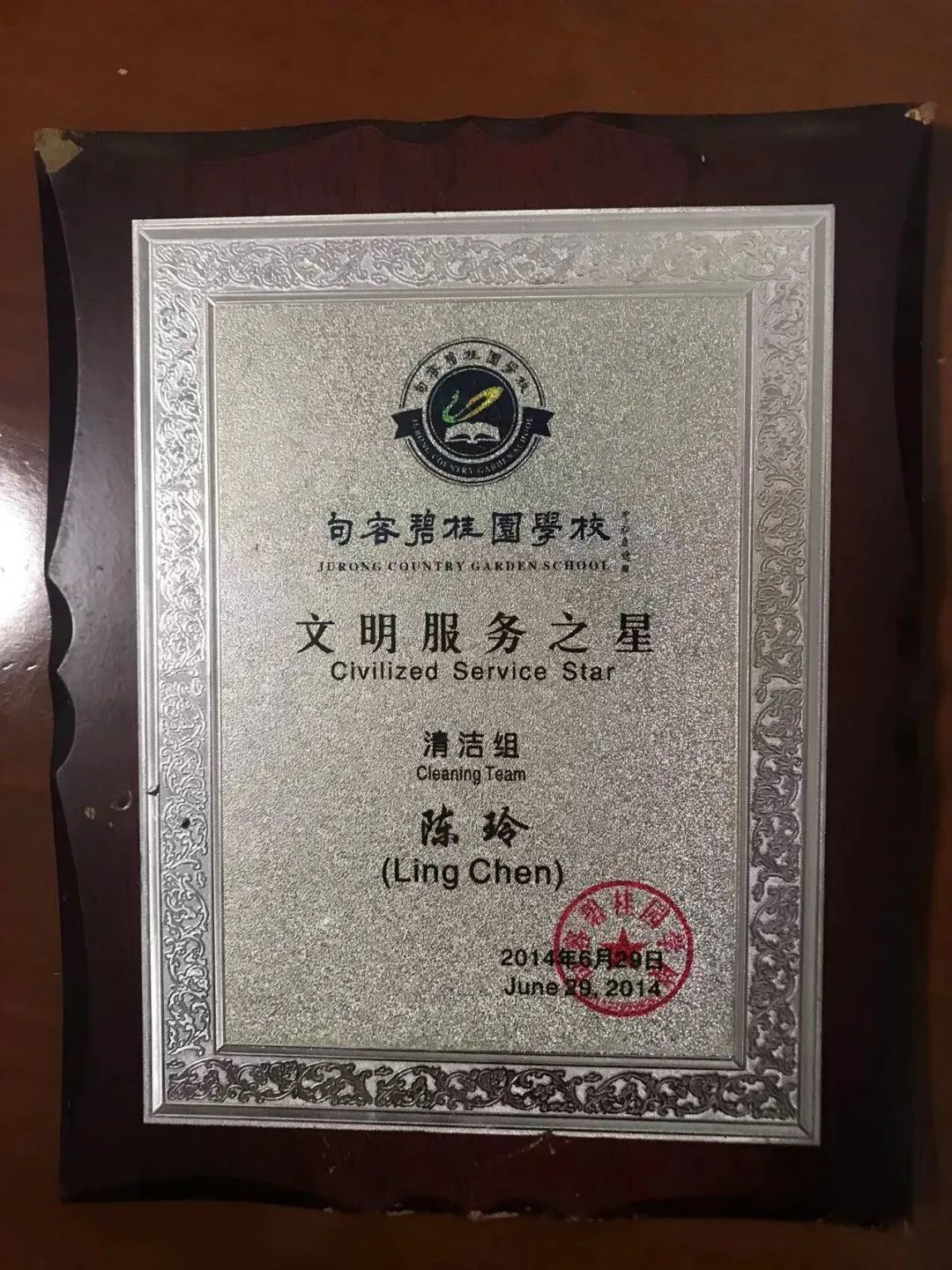 陈玲自2013年7月入职碧桂园学校环境部机动组组长,她一直默默无闻的付出,对待工作认真、踏实、肯干,苦活累活都是抢着去做,却从未有过一句抱怨。