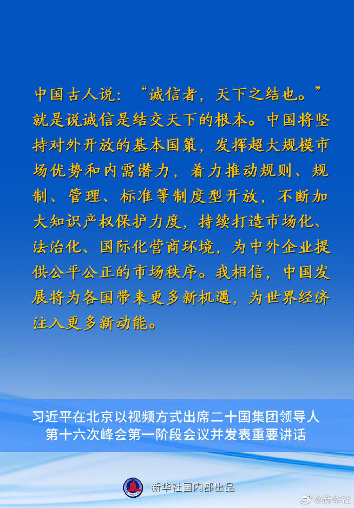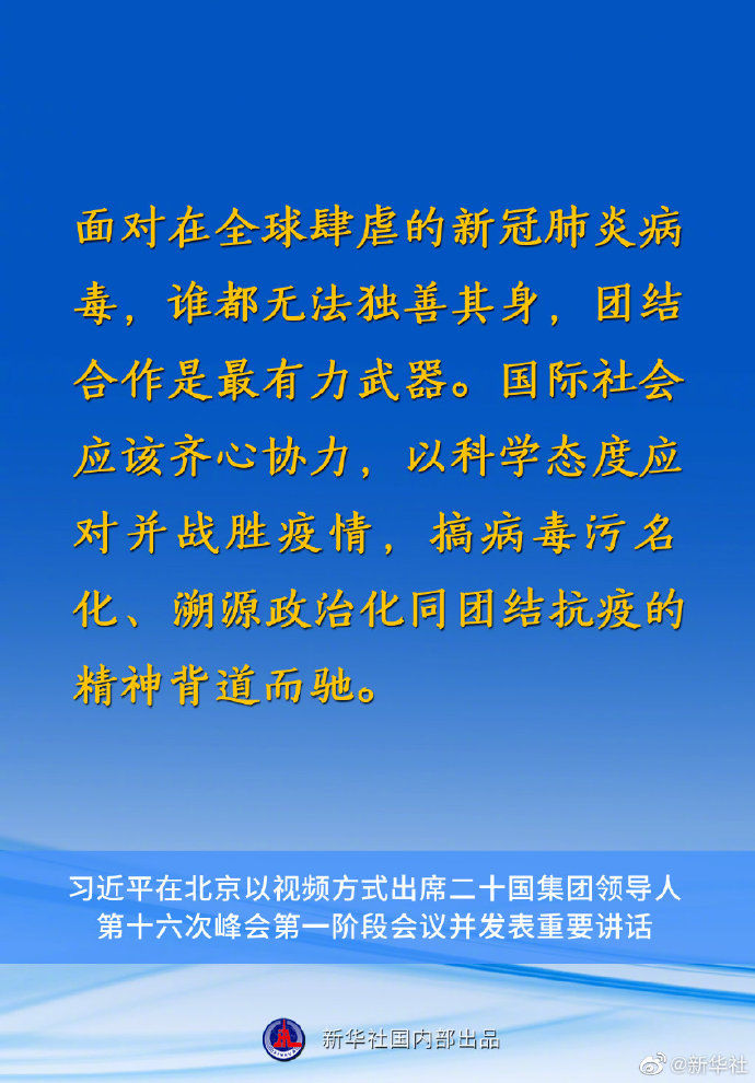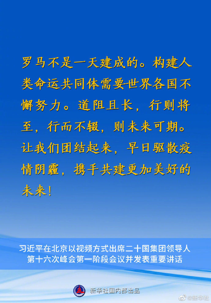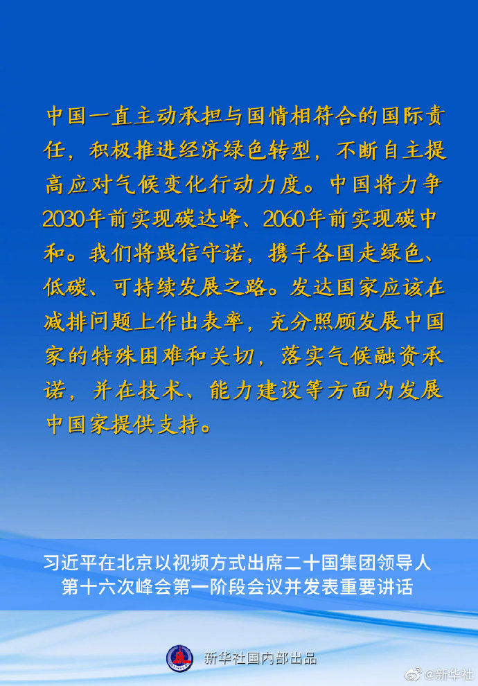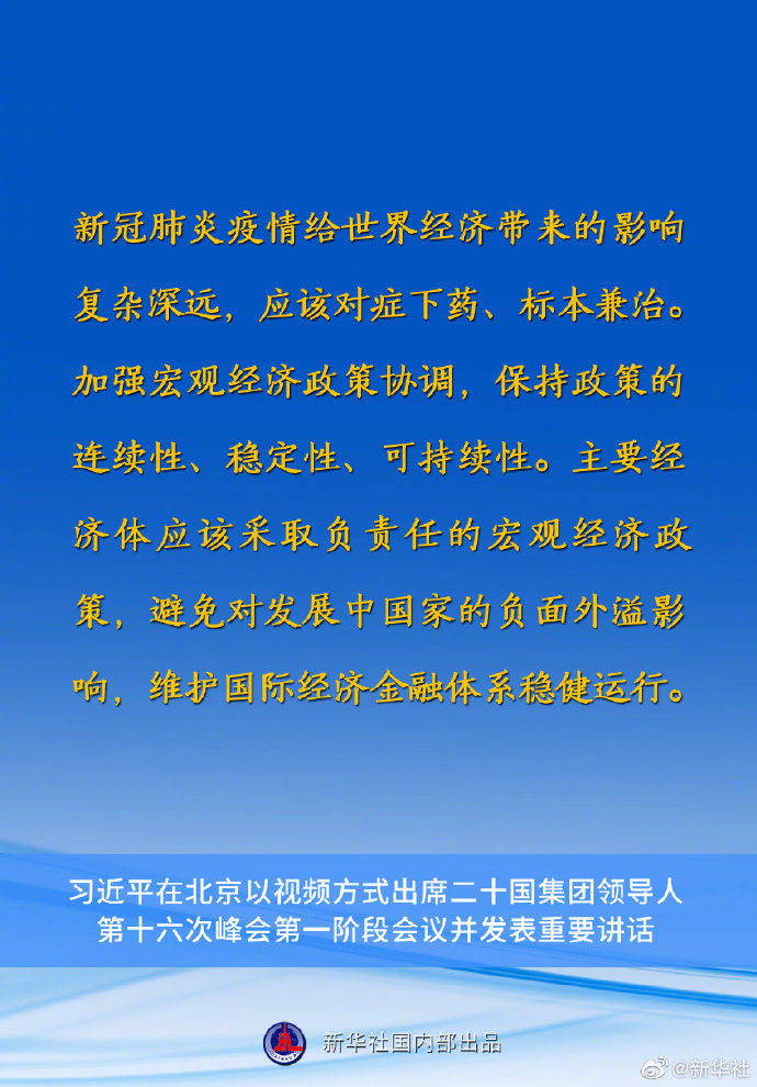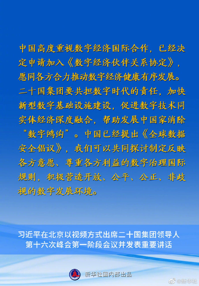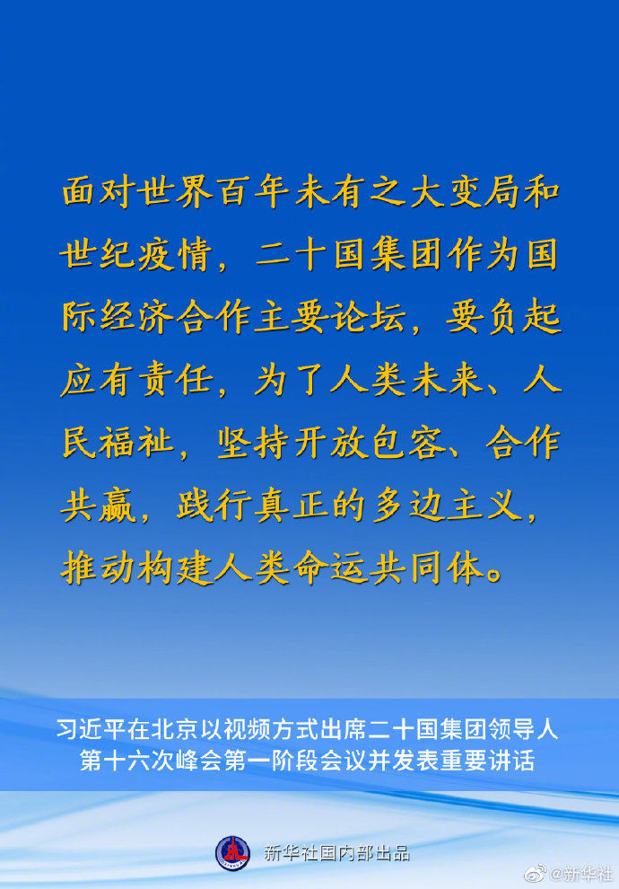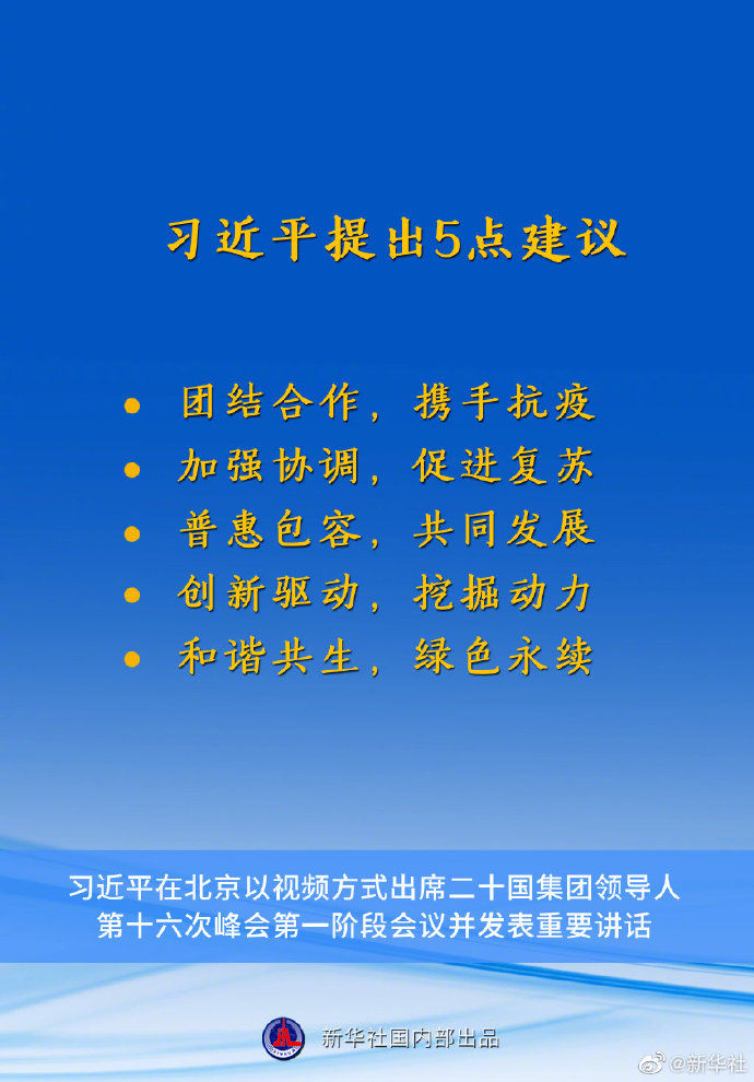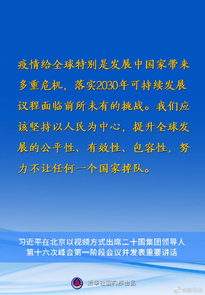 国家主席习近平10月30日在北京以视频方式出席二十国集团领导人第十六次峰会第一阶段会议并发表重要讲话。讲话有哪些要点,一起来看↓