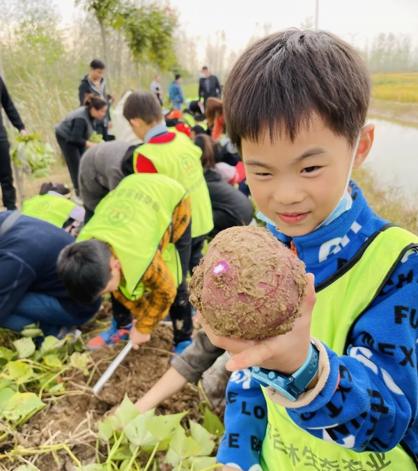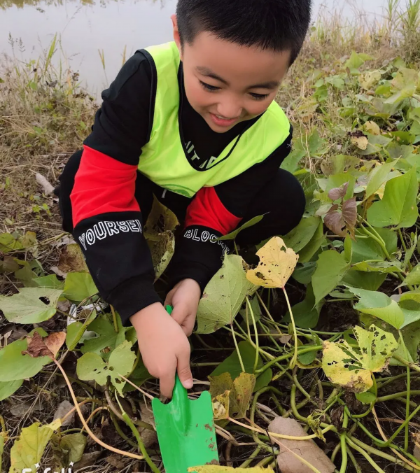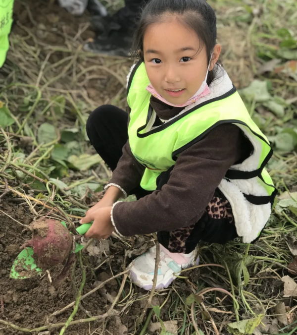 走进紫薯地,拿起小铁铲,在田间学生们上了一堂生动、有趣的农学课。挖紫薯可真是难者不会,会者不难,拿着铲子,一出手就知道是不是行家。有的学生在家长的指导下很快挖出大紫薯,有的学生找了半天藤蔓根部,揪出来一看什么都没有。大家互相帮助,像在考古,也像在挖宝藏,为了泥土下面藏着的、圆滚滚的紫薯宝贝,个个挖得热火朝天。