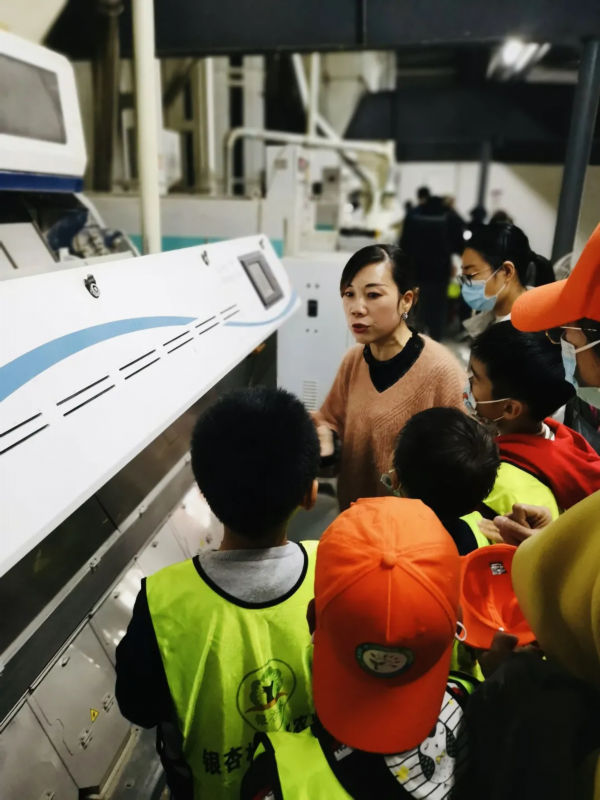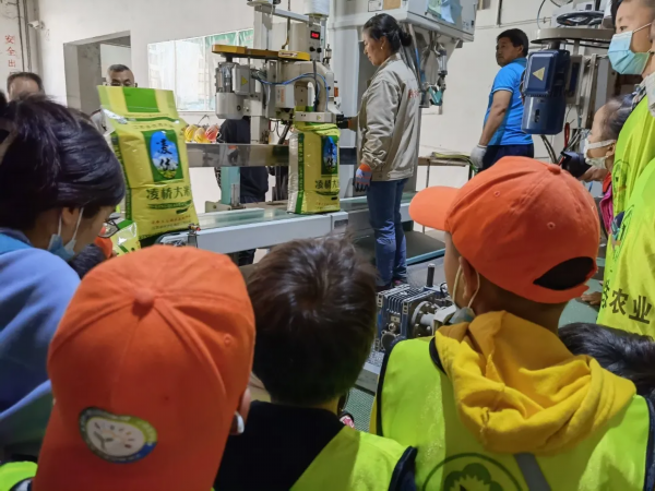 经过晒谷场,学生们来到了稻田旁边的大米加工厂。在工作人员的解说下,大家了解到一颗小小的稻谷变成一颗晶莹剔透的大米,原来经过了清理、脱壳、谷糙混合物分离、碾米、白米分级、色选、抛光、打包等一系列的加工过程。通过收割水稻、参观米厂,学生们切身感受到水稻要经过长时间的生长和辛勤的劳作才能成为手中一碗香气扑鼻的米饭。