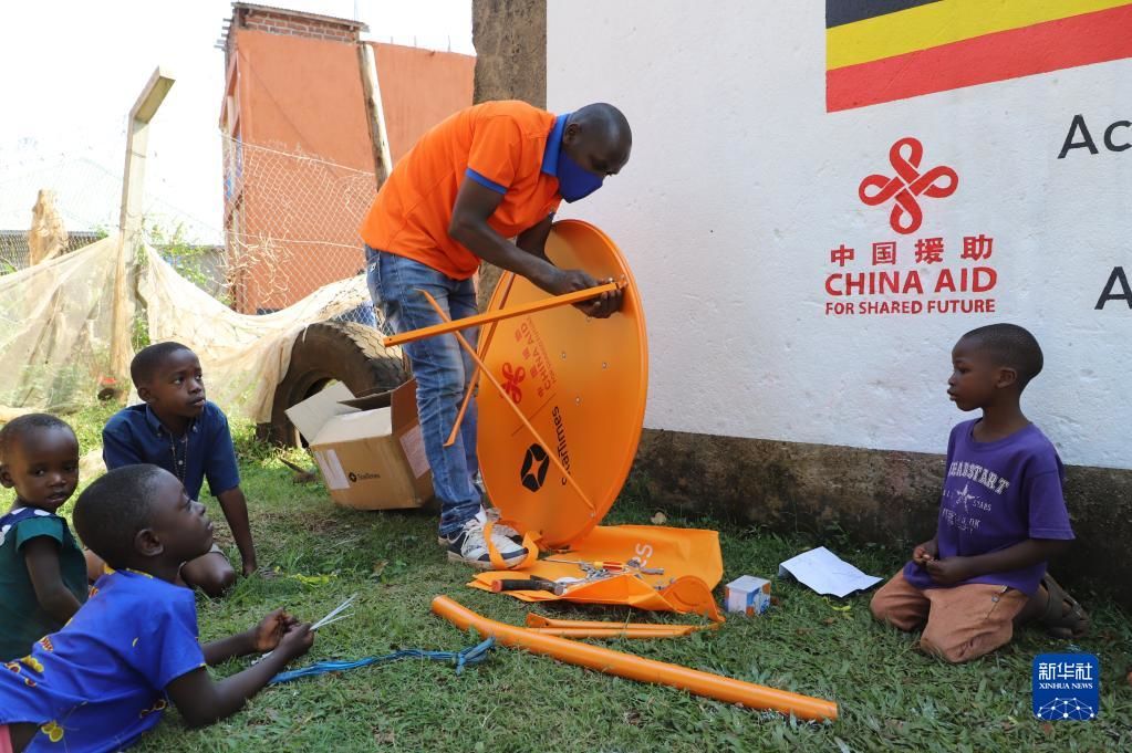 9月10日,技术人员在乌干达中部瓦基索区的布韦伦加村安装调试数字电视设备。“万村通”项目是2015年中非合作论坛约翰内斯堡峰会提出的中非人文领域合作举措之一,旨在为非洲1万个村庄接入卫星数字电视信号。新华社记者 张改萍 摄