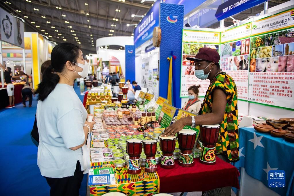 9月28日,在湖南长沙举行的第二届中国-非洲经贸博览会上,观众在选购非洲护肤品。新华社记者 陈思汗 摄
