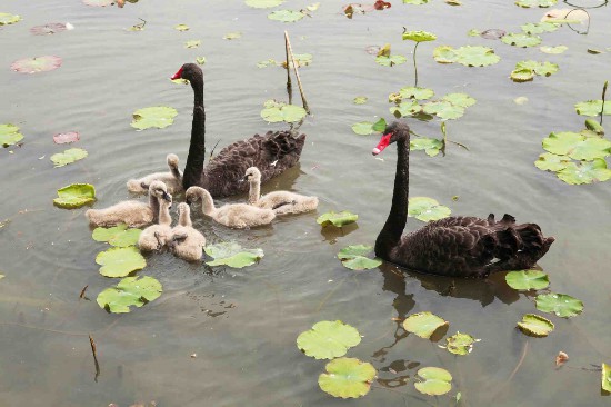 黑天鹅数量多,是因为它们容易繁殖。通常一对黑天鹅亲鸟一次可孵化4-8只黑天鹅。