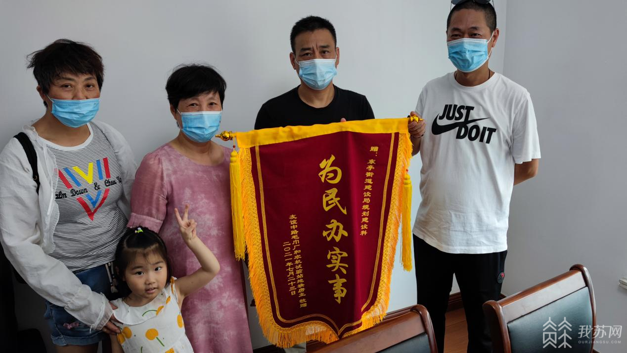 近日,石先生等几位市民早早的来到无锡市锡山区东亭街道,拿出一面写有“为民办实事”的锦旗,亲手送到了规划建设科负责人的手上,“我是代表友谊中路毛巾厂和农机实验站地块20余户房主来的,实在是感谢政府帮我们解决了多年的‘糟心事’啊!”石先生激动地拉着负责人的手表示感谢。