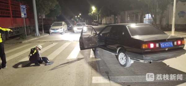 据扬州市公安局交警支队一大队副大队长崔璟介绍,当事人的车子当时是由南向北行驶,行驶到距离交警检查点一百多米远的地方,却猛打方向掉头准备逃跑了,其时,后方民警上去制止的时候,一下子被驾驶人撞倒了,直接导致左膝盖受伤了。