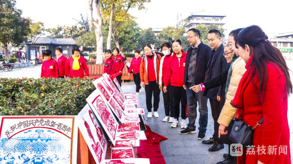 然后是综合展览。书法作品展、绘画作品展、摄影作品展、剪纸作品展、香包作品展、民族乐器展,六项展览同时开展,居民大饱眼福。其中,丰县党史系列剪纸作品《李贞乾》《刘文彬》等,受到大家一直关注。剪纸作品的作者邓秀云老师为大家介绍了李贞乾、李文彬烈士为丰县的革命事业奉献一生的光荣事迹,给大家上了一堂很好的党史学习教育课。