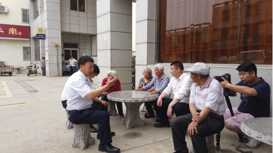 10月26日,在洋北街道涧南社区,新时代文明实践站邀请老支书正在为街村干部和群众代表宣讲党史,大家你一言我一语,谈建议、话感受。