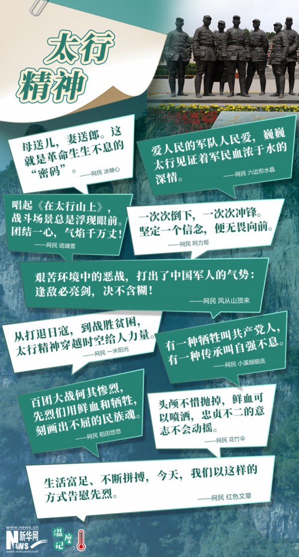 巍巍太行山,滔滔漳河水。今天,沿着当年的抗战足迹望去,一度“山穷水远路闭塞”的革命老区已焕发新颜,一幅“山里有美景,山上有产业,山下有新居”的美好画卷正徐徐展开。“从打退日寇,到战胜贫困,太行精神穿越时空给人力量”,正如网民所说,虽然抗日烽火早已熄灭,但伟大精神永不褪色,将永远激励中国人民克服艰难险阻、阔步向前。(文字:马若虎 海报设计:王晔)
