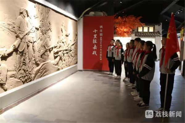 走进党史馆一楼,少先队员们在讲解员的引领下,认真学习了中国共产党的成长发展历程。从党的一大到党的十九大,展板上的每一张图片、每一个文字都在讲述着党在每一阶段的厚重历史。来到二楼洪庄镇革命史单元后,当得知74年前,为掩护大部队北撤,新四军在十里村以三个团的兵力阻击敌人跨过陇海线,无数先烈在此牺牲的事迹时,少先队员们庄重凭吊,以表达对先烈的深深敬仰。