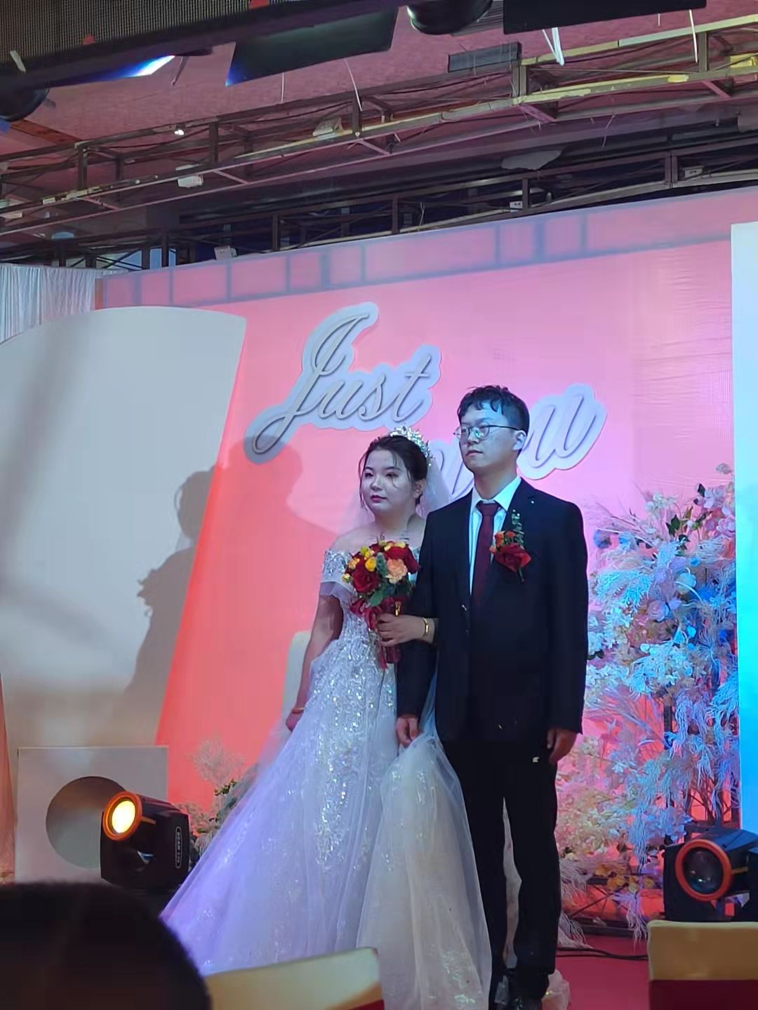 新郎名叫王继宗,是兴达公司工业4.0数据中心的一名员工;新娘名叫刘钟琴,是戴南中心小学的教师。