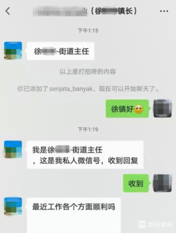 魏先生在无锡经营着一家企业,之前跟街道里的工作人员打过交道。一天,他的微信上突然接到一条添加好友的消息,对方自称是“街道主任”,并表示这个微信是他的工作账号。魏先生没有多想,就同意了对方的好友申请。