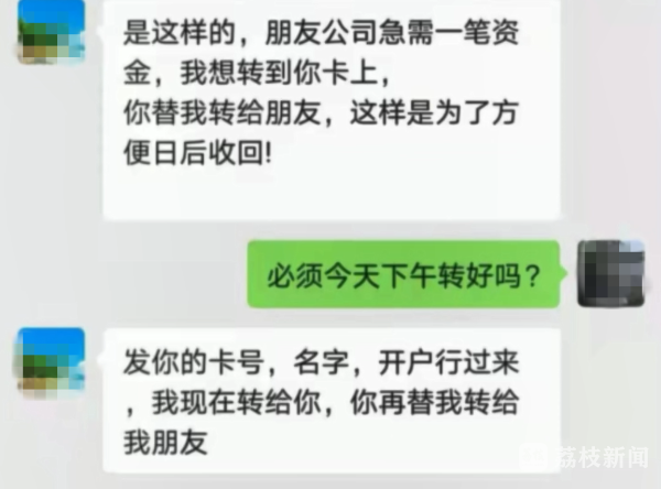 对方以朋友公司急需资金为由,让魏先生以自己的名义去帮忙转账,还表示这笔钱过后会马上归还。看似合情合理,又是领导开口请求帮忙,魏先生就没有拒绝。等到魏先生从银行转账回来后,“街道主任”又说钱不够,让他帮忙再凑十五万,总共要二十万。