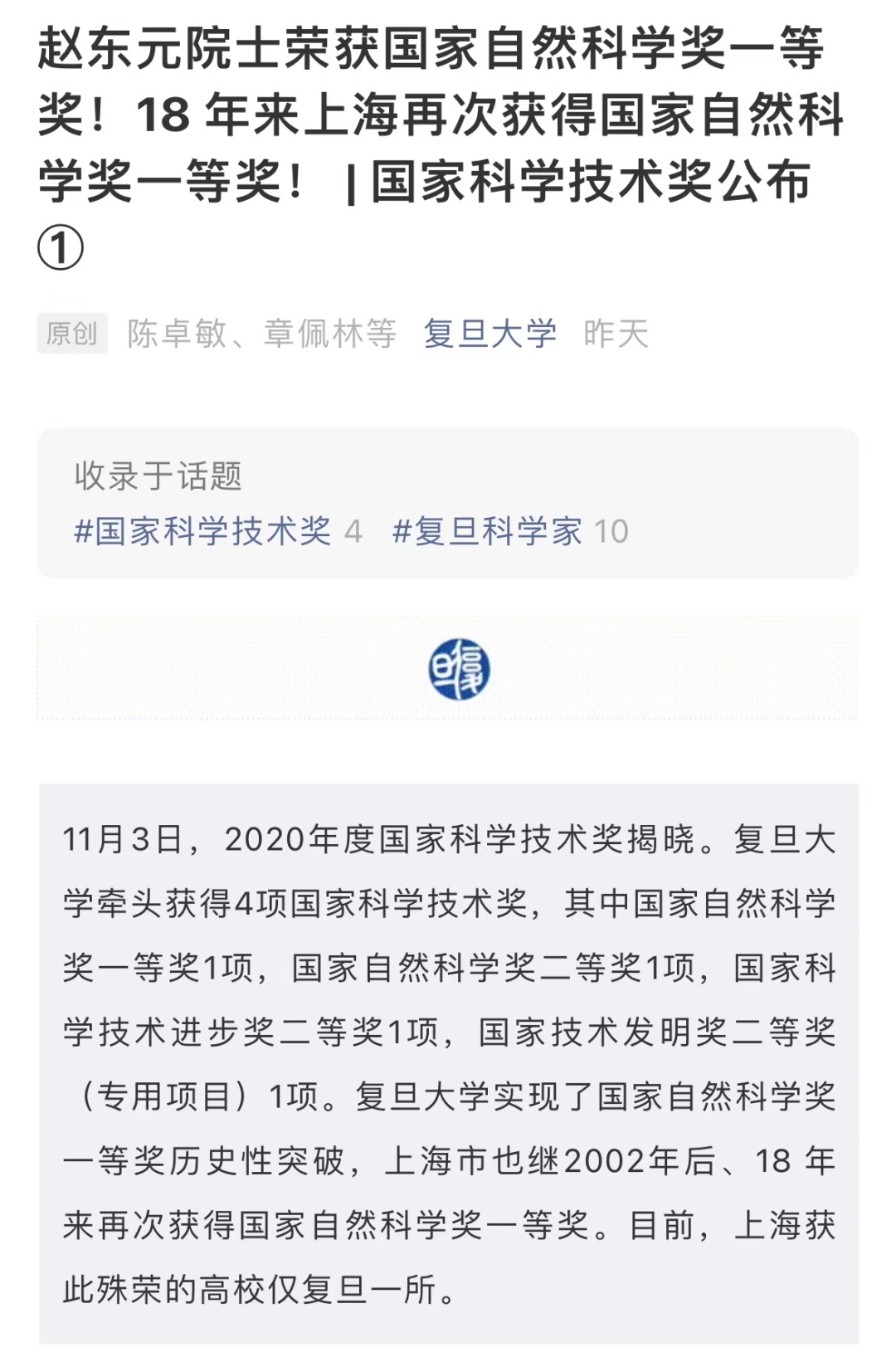 记者了解到,国家自然科学一等奖是中国自然科学领域的最高奖项,由于评选极为严格,该奖项在历史上曾出现多次空缺。