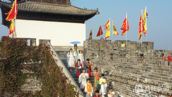 本届大赛落地盐城大纵湖东晋水城,群娃驾到,纷纷亮出看家本领。南京市八音鸟文化艺术中心和星光创造营的孩子们,在美丽的东晋水城,开启了MV拍摄之旅。登上城门楼,来一段国风走秀;迈步大纵湖边,排一段诗歌朗诵;行走在静谧的古色小巷中,拾趣童年。