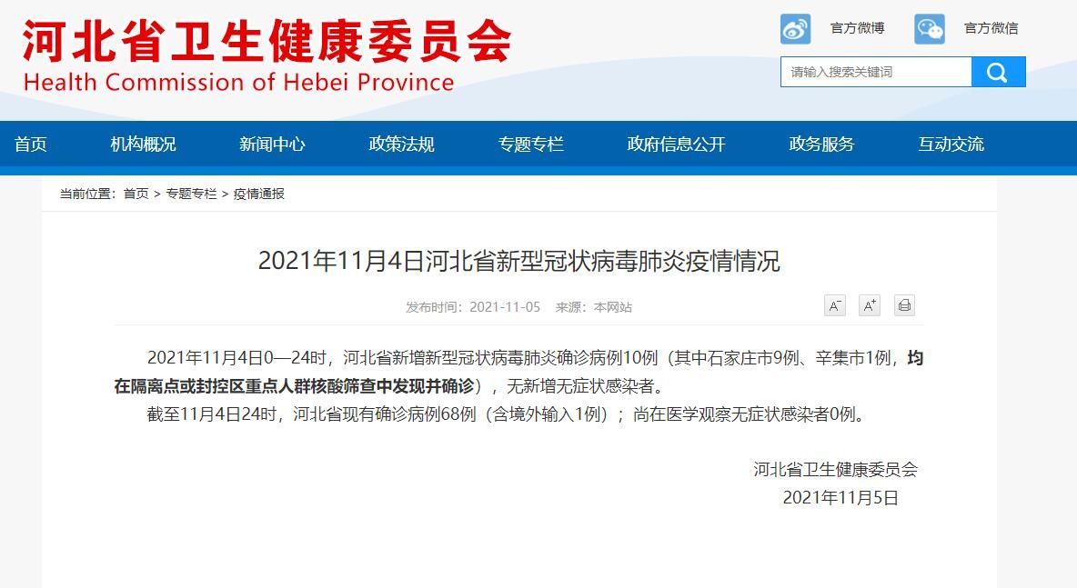 河北卫健委官网截图