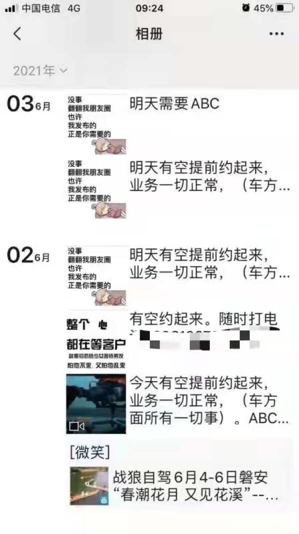 我苏网讯 近期,靖江市公安局生祠派出所民警在工作中发现,有个微信名为“ABC某氏车务”的网友在微信朋友圈发布信息,诸如“明天要C”、“明天正常,要ABC”、“明天要ABC证,有事打某某电话”等等。这个网友胆真肥,买卖驾驶证分居然公然在朋友圈招遥过市。民警通过侦查研判,发现靖江市新桥镇男子张某有重大作案嫌疑,于是,将张某依法传唤至派出所。