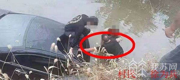 11月5日早上7点40分左右,在盐城市射阳县四明镇建东村境内的陈四线路段,一辆由南向北行驶的轿车与一辆拖拉机发生碰撞后失控,一头冲进路边的中沟河里,车上两名驾乘人员因车门自动锁死而无法脱身,眼看着车子下沉即将被河水淹没,危急时刻,居住在附近的徐为兵等村民和驾车路过的驾驶员王祥及时伸出了援救之手,将轿车的天窗玻璃砸碎,成功把困在车内的两名驾乘人员拖拽了出来,从而避免了悲剧的发生。