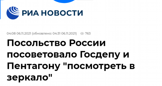 综合俄罗斯塔斯社、俄新社等媒体报道,在美方发表“担忧”俄武装力量在乌克兰附近活动的言论后,俄罗斯驻美国大使馆当地时间5日发推文回击称,“肆无忌惮地在全世界游荡并留下一片混乱”,美国才该“照照镜子”。