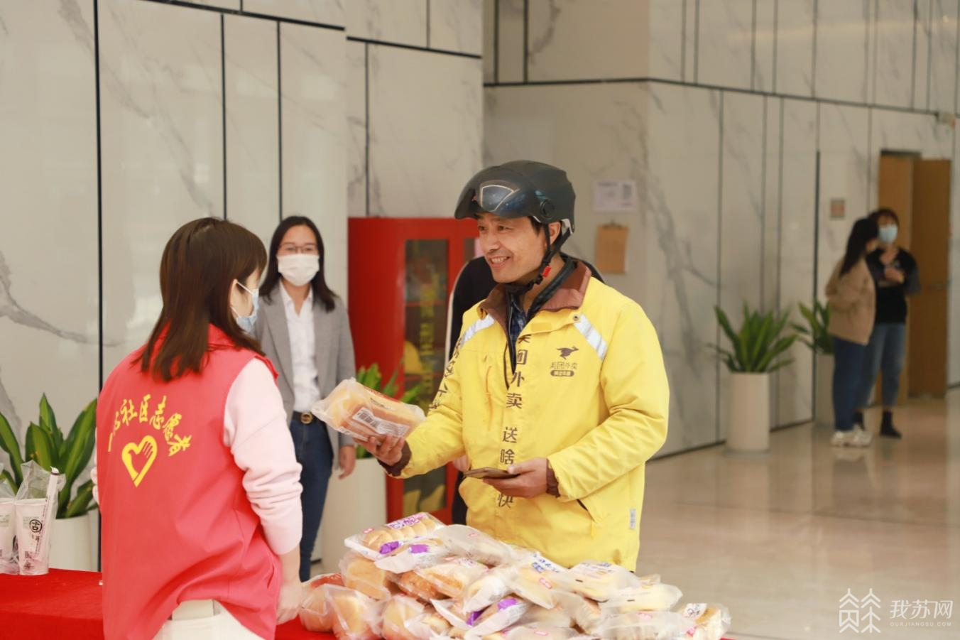 信达大厦地处锡东新城商务圈核心区,是外卖骑手频繁进出的场所。安镇街道在此设点,发起“请外卖小哥喝一杯奶茶”活动,为风中驰骋的外卖人员送上一份秋天的温暖。在大厦智能取餐区,党员志愿者们给匆忙送外卖的小哥们拿上奶茶、面包,让他们在渐凉的季节里补充能量、感受暖意。领到奶茶的小哥们纷纷表示感谢,“惊喜又感动”的外卖小哥脸上洋溢着腼腆的笑容:“平时都是我给别人送奶茶,今天也收到奶茶了,得拍照发个朋友圈好好炫耀一下。”