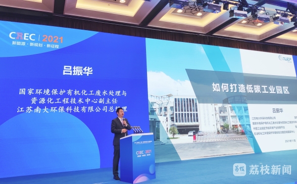 本次论坛由CREC组委会、江苏省贸促会、无锡国家高新技术产业开发区管理委员会联合主办,由无锡太湖湾科创城、无锡新能源商会、中国工业园区节能环保产业创新平台、江苏省能源研究会、无锡市低碳研究院、星洲工业园等单位联合承办。 论坛现场,国家环境保护有机化工废水处理与资源化工程技术中心副主任、江苏南大环保科技有限公司总经理吕振华作了《如何打造低碳示范区》的主题演讲,他从园区的政策解读及状况出发,分析了实现“双碳”目标的时间路径、技术路径、区域能耗现状、园区挑战与机遇,并提出“管理方法创新”“运营机理创新”“发展模式创新”的方法论。 依托南京大学、南大环保、江苏省环境科学研究院“产、学、研”优势资源整合,国家环境保护有机化工废水处理与资源化工程技术中心的多种创新技术能够实现废水资源回收、能源转化和提标排放,成功服务多个行业领域的园区及企业。特别是深度除氟除磷技术,有效针对无锡“治太”磷控制,集成电路、光伏产业含氟废水深度处理,全力护航无锡产业强市。