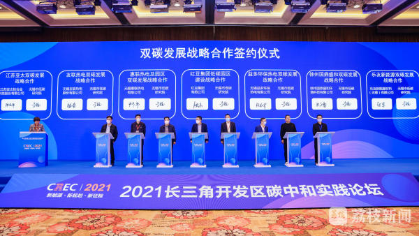 此外,中国工业园区节能环保产业创新平台企业开展战略合作,江苏南大环保科技有限公司与江苏现代低碳技术研究院、三峡智慧能源有限责任公司、晶科电力科技股份有限公司等多家重点企业签订碳达峰战略合作协议,为企业提供双碳咨询服务,助力企业实现“双碳”目标。