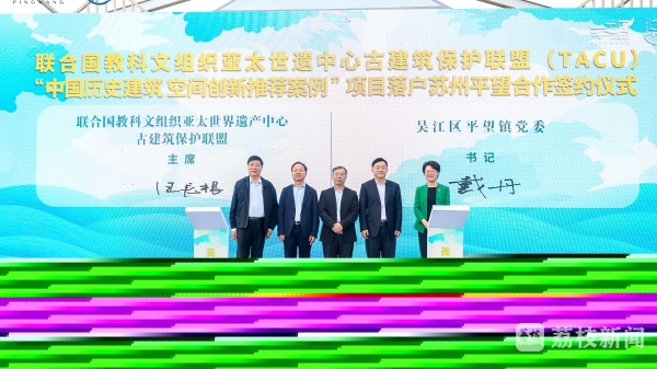 近年来,平望产业日益兴旺、商机无限,愈发成为兴业投资的热土。当天,中鲈人才社区项目、四河汇集·春风柳岸运动康养度假村项目、运河·时间里文化街区项目、联合国教科文组织亚太世遗中心古建筑保护联盟(TACU)“中国历史建筑 空间创新推荐案例”项目集中举行了合作签约仪式,并现场启动了(TACU)2022平望古镇历史空间保护与更新微改造设计征集活动。此外,2021吴江文化旅游节主题日系列活动平望镇“两在两同”重点项目开竣工仪式也同步举行。