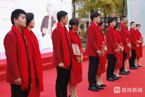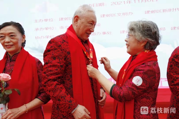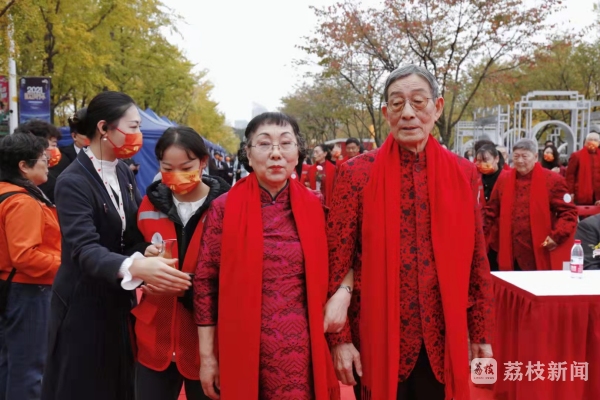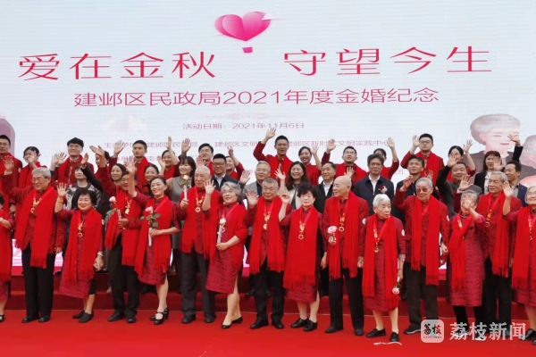 11月6日上午,由南京市建邺区民政局联合建邺区文明办共同主办的2021年“爱在金秋·守望今生”金婚纪念活动在建邺区银杏里举行。
