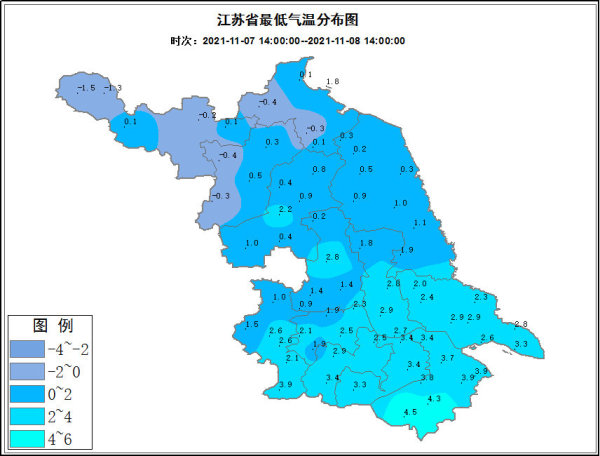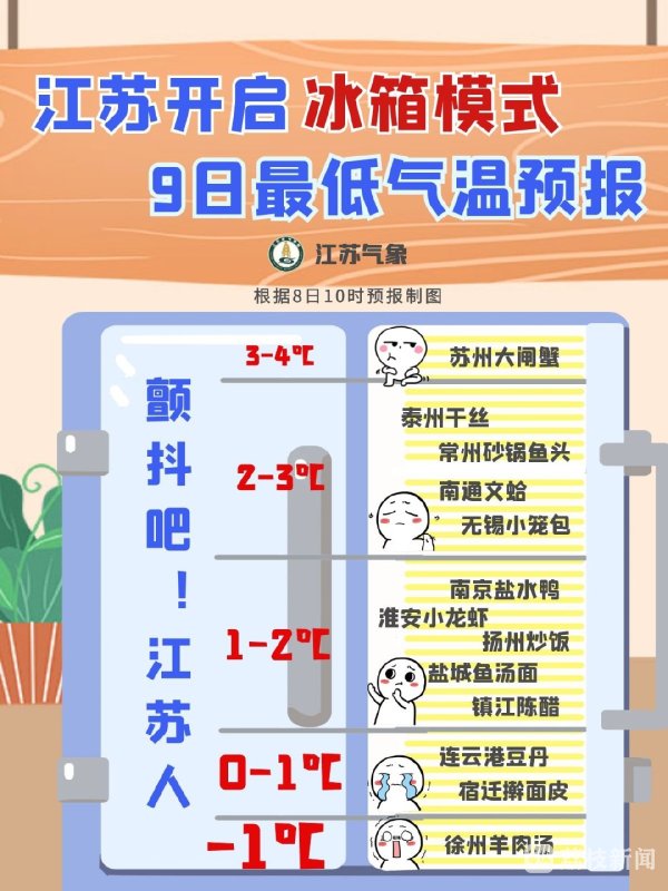 周一早晨,西北部直接进入冰箱冷冻区域,江淮大部也是冷藏区域,连云港、宿迁、淮安、徐州、盐城以及扬州最低气温只有0℃左右,其中连宿徐淮局部低至0℃以下,徐州丰县仅有-1.5℃,加上户外寒风阵阵,怎一个“瑟瑟发抖” 可以形容?走在户外的小伙伴们纷纷羽绒服上身,冬天体验卡提前上线。