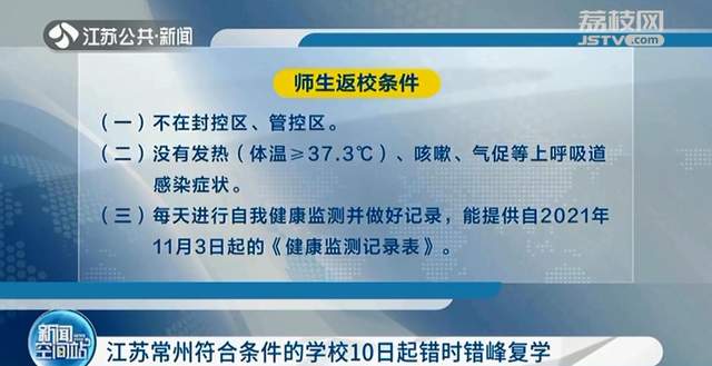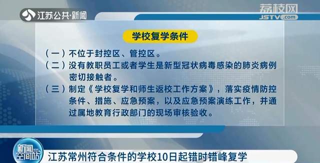 根据常州市新型冠状病毒感染的肺炎疫情防控应急指挥部学校防控组通报,常州市符合条件的学校将从11月10日起错时错峰复学。