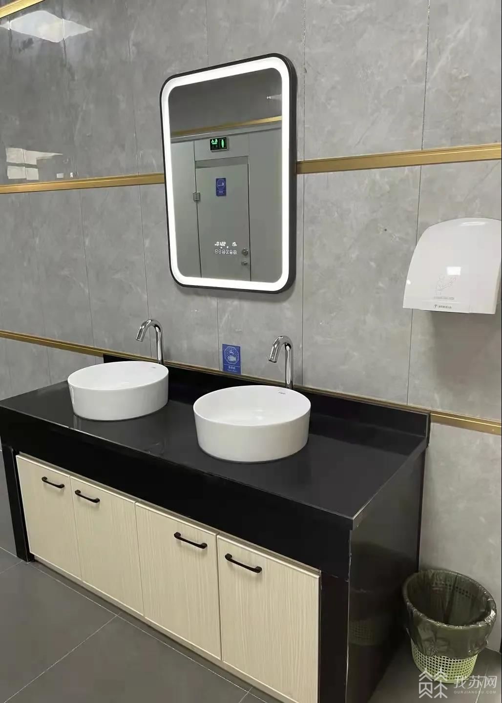 走进公厕,每一处都干净整洁,如厕区域以单个隔间为主,每个厕间配置了不锈钢纸巾盒、衣帽钩、手机托盘等设施。第三卫生间内设置了呼叫按钮,方便残障、婴幼、老弱等群体使用。公共区域除设置洗手池、智能面镜外,还设置感应洗手装置、手部烘干机,方便群众如厕后的清洁。